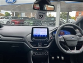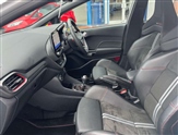 Cruise control with adjustable speed limiter and intelligent speed assist, Driver alert system, Electric power steering, Ford easy fuel, Lane keep assist, Lane keeping aid, Rear parking distance sensors, Rear view camera, Selectable drive modes (Normal, Sport, Track), Traffic sign recognition, Trip computer, Unique ST suspension, 3rd brake light, Auto high beam, Automatic headlights, Body colour bumpers, Body coloured electrically operated with side indicators, Dual chrome exhaust tailpipe, Electric front windows/one touch facility, Electric rear windows, LED rear lights, Matrix LED headlights with signature LED daytime running lights and integrated sequential indicator, Quickclear heated windscreen, Rain sensing wipers and auto dimming rear view mirror, Rear privacy glass, Rear side wing doors, Rear wiper, Unique ST front grille and bumper, ST rear bumper with diffusor, Unique ST scuff plates, 3 rear headrests, 3 seat bench in 2nd row, 6 way manual driver seat adjust, with lumbar adjust, 6 way manual passenger seat adjust, with lumbar adjust, Adjustable head restraints, Centre console with opening armrest, 2x cupholders, 12v and USB, EATC - Electronic Auto Temperature control, Floor mats with red stitching, Ford Performance sensico partial premium leather upholstery with red stitching, Ford performance sports seats, Leather gear knob with red stitching, Leather steering wheel with red stitching, Seat belts with red detailing, Single front passenger seat, Unique ST soft feel gearknob, Performance pack - Fiesta, 3 point seatbelts on all rear seats, Electronic stability control with hill start assist, Front and rear seat belt warning, Manual child lock in rear doors, Red brake calipers, Tyre pressure monitoring system, Ford keyfree system with Keyless entry and keyless start, Remote central locking, Thatcham alarm with power door dead locks, 18"5 spoke alloys with magnetite finish, Tyre repair kit,
