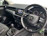 Bluetooth connection, Driver alert system - DAS, Electromechanical power steering, Exterior temperature gauge, Lane assist including road edge detection, Multifunction trip computer in black and white, Service interval indicator, Speed limiter, 2x USB-C in the front (for data transmission and charging), 4 speakers in front, Auxiliary socket for external MP3 player, DAB digital radio reception, Radio Swing with 6.5"colour display, Basic LED Headlights, Basic rear lights, Body colour door mirrors, Body coloured bumpers, Dimming rear view mirror with black frame, Door mirror integrated indicators, Electrically adjustable and heated door mirrors, Electrically adjustable front windows with function auto up/down, Front fog lights, Front window wiper intermittent control, Headlight range control - Automatic, Ice scraper in fuel cap, LED daytime running lights with coming and leaving home feature, Mechanical adjustable rear windows, Rain sensor, Rear LED fog light, Rear side wing doors, Rear window wiper with washing nozzles, Roof mounted spoiler, SKODA tailgate lettering in chrome, Third brake light, 2 reading lights in front and 2 reading lights in rear, 2 spoke leather multifunction steering wheel, 3 rear headrests, Backrest split and folding, Central console with fixed cup holder and storage box, Chrome handbrake release button, Fabric upholstery, Gearshift knob/handle in leather, Grain satin black interior door handles, Hand brake lever handle in leather, Height adjustable front headrests, Height adjustable front seats, Height adjustable steering wheel, ISOFIX and TopTether anchorage points to the outer rear seats, ISOFIX and TopTether on the front passenger seat, Luggage compartment lighting, Manual air conditioning, Manually adjustable lumbar support in front seats, Pollen filter, Rear seat bench unsplit, Single front passenger seat, Storm grey headlining, Sun visors with mirror and airbag label on passenger side, Ticket holder, 3-point height adjustable front seats belts with pretensioner and force limiter, Automatic warning lights in case of crash, Driver and passengers airbag with switch off function, e-Call+, ESC including ABS, MSR, ASR, EDS, HBA and XDS, Front and rear seat belt warning, FRONT ASSIST (AEB City and AEB Inter Urban), Front side airbags, Head airbags, One tone horn, Pedestrian protection, Three rear 3-points safety seat belts with pretensioner and force limiter including stop function for outer rear seat belts, Tyre pressure monitoring system, Anti-theft alarm system including immobiliser, interior monitoring, backup horn, and towing protection, Central locking with radio remote control, interior controls, SAFE function and 2 foldable keys, Black painted air vents, Glossy black decorative trim, Grain satin black central console cover, Grain satin black lower decorative trim, Satin black door and side trim panel in front, Anti-theft wheel bolts protection, Super-low rolling resistance tyres,