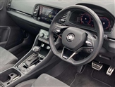 8"Digital display, Advanced driver attention and drowsiness monitor, Emergency services call system, Outside temperature gauge, Sensor for driver assistance systems, Service interval indicator, SmartLink wireless for Apple and wired for Android, Start/stop system with regenerative braking, USB C Port x 2 in front centre console, Virtual Cockpit - 10.25"digital display, Virtual pedal with electrically operated boot door, Wireless smartphone charging, Canton sound system, DAB radio with Bluetooth, USB connection, Acoustic glass, Aero front windscreen wipers with intermittent function, Auto dimming rear view mirror with light and rain sensors, Black door mirrors, Black electric window control buttons, Black radiator grille, Black roof rails, Body colour door handles, Electric front and rear windows with child proof lock, Front door steps with SportLine logo, Heated rear windscreen, LED 3rd brake light, LED daytime running lights, LED rear lights with high functionality welcome effect and dynamic indicators, Light assistant (coming/leaving home/tunnel light), Panoramic sliding sunroof, Plastic scuff plates in door apertures, Privacy glass, Protective door side sills in body colour, Rear diffuser, Rear side wing doors, Rear spoiler, Rear window wiper with washer system and intermittent control, Safety reflectors on front doors, Skoda lettering on tailgate in black, Sportline badge on front fender, Sportline decorative inserts with badging, Sports front and rear bumpers, 1.5 litre bottle holders in driver and front passenger door panels, 12V socket in boot, 12v socket in front centre armrest with storage compartment and rear air vents, 2 x Tablet holder, 3 rear height adjustable headrests, 3 seat bench in 2nd row, 3 spoke leather sports multifunction steering wheel and silver stitching with gear shift paddles, 4 foldable roof handles with rear coat hooks, Black floor carpet, Chrome inner door handles, Double sided boot floor, Foldable hooks in the boot, Front head restraints, Height adjustable front three point seats belts with tensioners, Height/reach adjust steering wheel, Ice scraper, Illuminated glovebox, Illuminated luggage compartment, Isofix child seat preparation for front passenger seat, Isofix child seat preparation outer rear, Manual lumbar support for front seats, Pen holder, Pollen filter, Rear boot cover, Rear reading lights, Rear seats fixed folding and divided 60:40, Rubbish bin door, Safety vest holder, Single front passenger seat, Storage box in upper central dashboard closed, Sunvisors with illuminated vanity mirrors, Textile floor mats, Ticket holder, Titan black interior ceiling, Umbrella under passenger seat, Under passenger seat storage compartment, Welcome animation with sportline logo, Light Pack - Karoq, Non Smokers pack, Automatic door unlocking in case of crash, Automatic fuel cut off in case of crash, Driver airbag, Electronic parking brake with auto hold function, Emergency rear braking signal, ESC including ABS, MSR, ASR, EDS, HBA, DSR, RBS, MKB and traction control, Front side airbags, Head airbags, Hill hold control, Knee airbags, Passenger airbag with switch-off function, Pedestrian monitor, Seatbelt reminder signalisation and pretensioner for all seats, Three point seatbelts rear, Two tone horn, Tyre pressure monitor, Alarm with interior monitoring, back up horn and tilt sensor with safe function, Electronic engine immobiliser, Keyless entry and start/stop, Remote central locking with 2 remote folding keys, Black air vent surround, Black centre console, carbon door decor, Satin black dashboard, Satin black door trim, 19"Sagittarius anthracite alloy wheels, Anti-theft wheel bolts protection, Breakdown and tool kit,