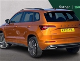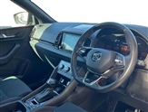 8"Digital display, Care connect, Driver fatigue sensor, Emergency services call system, Outside temperature gauge, Service interval indicator, SmartLink wireless for Apple and wired for Android, Start/stop system with regenerative braking, USB C Port x 2 in front centre console, Virtual cockpit, Virtual pedal with electrically operated boot door, Diesel particulate filter, 8 speakers, DAB radio with Bluetooth, USB connection, Acoustic glass, Aero front windscreen wipers with intermittent function, Auto dimming rear view mirror with light and rain sensors, Black door mirrors, Black electric window control buttons, Black radiator grille, Black roof rails, Body colour door handles, Dynamic headlight range control with cornering light function, Electric front and rear windows with child proof lock, Front door steps with SportLine logo, Heated rear windscreen, LED daytime running lights, LED rear lights with high functionality welcome effect and dynamic indicators, Light assistant (coming/leaving home/tunnel light), Panoramic sliding sunroof, Plastic scuff plates, Privacy glass, Protective door side sills in body colour, Rear diffuser, Rear side wing doors, Rear spoiler, Rear window wiper with washer system and intermittent control, Safety reflectors on front doors, Skoda lettering on tailgate in black, Sportline badge on front fender, Sportline decorative inserts with badging, Sports front and rear bumpers, Third brake light, 1.5 litre bottle holders in driver and front passenger door panels, 12V socket in boot, 12v socket in front centre armrest with storage compartment and rear air vents, 2 Folding hooks and nets in boot, 3 rear height adjustable headrests, 3 seat bench in 2nd row, 3 spoke leather sports multifunction steering wheel and silver stitching with gear shift paddles, 4 foldable roof handles with rear coat hooks, Black floor carpet, Black roof headlining, Chrome inner door handles, Double sided boot floor, Foldable hooks in the boot, Front head restraints, Height adjustable front three point seats belts with tensioners, Height/reach adjust steering wheel, Ice scraper, Illuminated glovebox, Illuminated luggage compartment, Interior noise suppression, Isofix child seat preparation outer rear, Manual lumbar support for front seats, Pen holder, Pollen filter, Rear boot cover, Rear reading lights, Rear seats fixed folding and divided 60:40, Rubbish bin door, Safety vest holder, Single front passenger seat, Storage box in upper central dashboard closed, Sunvisors with illuminated vanity mirrors, Textile floor mats, Ticket holder, Titan black interior ceiling, Tool kit, Welcome animation with sportline logo, Light Pack - Karoq, Parking pack - Karoq, Automatic door unlocking in case of crash, Automatic fuel cut off in case of crash, Child locks on rear doors, Driver airbag, Electronic parking brake with auto hold function, Emergency rear braking signal, ESC including ABS, MSR, ASR, EDS, HBA, DSR, RBS, MKB and traction control, Front side airbags, Hill hold control, Knee airbags, Passenger airbag with switch-off function, Pedestrian monitor, Seatbelt reminder signalisation and pretensioner for all seats, Three point seatbelts rear, Two tone horn, Tyre pressure display, Tyre pressure monitor, Alarm with interior monitoring, back up horn and tilt sensor with safe function, Electronic engine immobiliser, Keyless entry and start/stop, Remote central locking with 2 remote folding keys, Black air vent surround, Black centre console, Satin black dashboard, Satin black door trim, 19"Vega black polished alloy wheels, Anti-theft wheel bolts protection, Matt black aero hub caps, Storage on wheel cover,