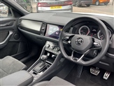 Bluetooth system, Columbus satellite navigation with 9.2"touchscreen, integrated Wi-Fi, web radio, Digital voice enhancement, E-call, ECO Stop/start function, Exterior temperature indicator, Progressive steering, Rear view camera, Smartlink wireless for apple carplay and wired for android auto, Speed limiter, Tailgate unlocking from outside, USB C Port x 2 in front centre console, Wireless charging, 8 Speakers, DAB Digital radio, Aero front windscreen wipers with intermittent function, Aero rear window wiper, Auto dimming rear view mirror, Black roof rails, Black sports styling including front grille and window surrounds, Black wheel arch surrounds, Body colour bumpers, Body colour door handles, Electric adjustable/heated/folding door mirrors, driver side auto dimming with boarding sports and memory function, Electric front and rear windows, Extended rear spoiler with finlets in gloss black, Front fog lights, Full LED matrix headlights with AFS (adaptive front light system), cornering function and AWL (all weather lighting system), Gloss black door mirrors, Headlight washers, Heated rear window, Invisible tailpipe, LED daytime running lights, LED rear fog light, LED third brake light in rear spoiler, Light assistant (coming/leaving home/tunnel light), Off-road style lower front bumper element, Privacy glass, Rain and light sensors, Rear diffuser, Rear LED lights (high functionality) with welcome effect and dynamic indicators, Rear side wing doors, Safety reflectors on front and rear doors, Sportline badge on front fender, Sports front and rear bumpers including lower rear chrome strip, Tailgate lettering in Black, Window control switches with black trim, 12V socket in boot, 2 rails with 2 hooks, 2 seat bench in 3rd row, 3 seat bench in 2nd row, 4 foldable roof handles with rear coat hooks, 60:40 foldable rear seat with sliding adjustment and backrest angle adjustment, Aluminium pedals, Black roof headlining, Bottle holders in door panel in the 1.5 litre front and 1 litre rear, Cargo storage compartments, Chrome headlight control button, Chrome interior door handles, Coat hooks on B pillar, Covered storage compartment on driver side, Front centre armrest with storage compartment, cup holder and 12V socket, Front courtesy lights, Gear shift lever with chrome frame and black gloss insert, Grey stitching in front and rear armrests and door armrests + door inserts, Height adjustable front headrests, Illuminated and cooled glovebox, Illuminated luggage compartment, Isofix child seat fittings in outer rear seats with top tether, Manually adjustable steering column, Microsuede door panels, Net programme in boot (1x horizontal Net, 2x vertical Nets), Overhead glasses storage compartment, Pollen filter, Rear centre armrest with cupholders, Single front passenger seat, Sliding trunk cover, Small Bags on the inner sides of the front backrests, Sports seats, Sunvisors with illuminated vanity mirrors, Three rear height adjustable headrests, Ticket holder on A Pillar, Umbrella in door panel, Variable boot floor, LED Interior light pack - Kodiaq, Auto door release and activation of warning lights in the event of an accident, Child locks on rear doors, Driver and front passenger airbag with knee airbag and front passenger airbag deactivation, Electronic parking brake with hill start assist, Emergency rear braking signal, ESC (incl. ABS+MSR+ASR+EDS+HBA+DSR+RBS+MKB), Front assist with autonomous emergency braking, Front side airbags with curtain airbags, Fuel cut off safety device, Height adjustable front 3 point seatbelts + pretensioners, Hill hold control, Rear disc brakes, Safety vest holder in door, Seat belt reminder for all seats, Three point rear seat belts, Two tone horn, Tyre pressure monitor, Alarm with interior monitoring and tilt sensor with safe function, Anti-theft wheel bolts, Immobiliser, Keyless entry and start system (KESSY), Remote central locking with 2 keys, Black air vent surround, Carbon finish dashboard and door inserts,