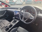 Adaptive cruise control including Front Assist, radar sensor controlled distance monitoring system, City emergency braking system, Driver alert system, Driver profile selection, Exterior temperature gauge with frost alarm, Lane assist, Low washer fluid warning light, Multifunction computer includes visual gear, One touch indicator turn signal, Proactive occupant protection, Security and service including e-call, Speed sensitive power steering, Speedo and rev counter, electronic odometer, trip, service interval display and fuel gauge, Start/Stop function, Traffic jam assist, Voice activation, Warning buzzer and light for front seatbelts unfastened, Battery regeneration during braking, Diesel particulate filter, Misfuel prevention device, Aerial for radio integrated into rear windscreen, DAB Digital radio receiver, Auto dimming interior rear view mirror, Automatic headlights with dusk sensor, Automatic leaving home and manual coming home lighting functions, Black radiator grille with chrome louvres, Body colour bumpers, Body colour door handles, Body coloured door mirrors with intergrated indicators, Chrome side window surrounds, Electric heated windscreen washer jets, Front and rear electric windows, Fully galvanised body, Gloss black finish on B pillar, Heated rear window, High level 3rd brake light, LED rear lights, LED rear number plate lights, Plastic load sill protection, Rain sensor, Rear side wing doors, Rear tinted glass from B pillar backwards, approx 65% tinted, Rear window wash/wipe, Remote electrically adjustable and foldable heated door mirrors including automatic dimming function on drivers side door mirror puddle lights, Silver anodised roof rails, Warning lights for open tailgate and doors, White instrument lighting, Windscreen wipers/ intermittent wipe + 4 position delay, 12V socket in front centre console, 12V socket in luggage compartment, 3 seat bench in 2nd row, 40:20:40 split folding rear seat backrests, Carbon optic side bolsters, Climate control - 3 Zone electronic air conditioning with automatic air recirculation, Driver's door storage compartment for 1.0 litre bottle, Extending luggage compartment cover with convenience opening, stowable, Front and rear interior lighting with delay and dimming function, Front centre armrest with storage compartment and two rear air vents, Front cupholders x2 with covers, Front passenger storage compartment for 1.5 litre bottle, Front seats with embroidered R Line logo on backrest, Height adjustable and removable variable boot floor, Height adjustable rear seat head restraints (x3), Height/reach adjust steering wheel, Illuminated vanity mirrors, Isofix child seat preparation, outer rear seats, Load lashing points x 4 in luggage compartment, Load through provision, Lockable, illuminated, cooled glovebox, Luggage compartment lighting, Nappa leather upholstery, Rear seat centre armrest with storage compartment, Single front passenger seat, Stainless steel pedals, Storage compartment in rear doors, Storage compartment in roof console with cover, Unique R Line door sill protectors, Unique R Line front and rear carpet mats, Easy open package with full electric tailgate/ boot - Passat (Estate), R line styling pack - Passat (Estate), 3x3 point rear seatbelts, ABS (Anti locking brake system) includes BAS (Brake assist) and EBD (Electronic brake pressure distribution), Automatic post collision braking, Disc brakes front and rear, Door open warning reflectors, Driver/Front Passenger airbags, Drivers and front passengers safety optimised head restraints, longitudinal and height adjustable, Drivers knee airbag, Electronic parking brake with auto hold, First aid kit, Front and rear passenger curtain airbags, Front passenger airbag deactivation switch, Front side impact airbag, Height adjustable front 3 point seatbelts + pretensioners, Hill hold function, Manual rear child locks, Pre crash preventive occupant protection, Rear seat side impact airbags, Rigid safety cell with front and