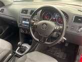 App-Connect, Bluetooth Telephone preparation, Cruise control + speed limiter, Driver alert system, Multi function display, Multifunction computer, PAS - speed related, Service interval indicator, Ultrasonic front and rear optical and audible parking sensors, Warning buzzer and light for front seatbelts unfastened, 6 speakers, Composition media system with radio, glovebox mounted CD, colour touch screen, SD card, aux-in, USB, multimedia interface, DAB Digital radio, Black grille with chrome surround, Body colour bumpers, Body colour door handles, Body colour door mirrors, Body coloured side sills, Chrome trimmed front air intake surrounds, Electric folding door mirrors, Electric front windows, Electric operated/heated door mirrors, Front fog lights with static cornering function, Front wash/wipe with interval delay, Heat insulated tinted glass 65% light absorbing from B pillar back, Heated rear window with auto timer, Rear electric windows, Rear windscreen washer and wiper with interval delay, 12V power socket in centre console, 2 bag hooks in luggage compartment, 2 cupholders, 3 rear head restraints, 3 spoke steering wheel, 4 grab handles, 60/40 split folding rear seat, Centre console storage, Chrome interior door handles, Driver and passenger sunvisors, Driver seat height adjust, Dust/pollen filter, Front door pockets, Front passenger seat height adjust, Front seat backrest storage nets, Front/rear reading lights, Glovebox, Height/reach adjustable steering column, Illuminated vanity mirror, Interior light with delay, Isofix Preparation 2 Rear child seats, Luggage compartment cover, removable, Luggage compartment lighting, Matt chrome gear lever gaiter surround, Multifunction leather steering wheel with leather gear knob/handbrake grip, Storage compartment in front doors, Storage compartment in rear doors, Sunglasses holder, Variable boot floor, Light and sight pack - Polo, 3 point height adj front seatbelts + pretensioners, 3x3 point rear seatbelts, ABS, Automatic post collision braking, Driver/front passenger airbag, Driver/Passenger whiplash optimised head restraints, ESC - Electronic Stability Control + traction control, ESP with EDL + ASR, Hill hold control, Hydraulic Brake Assist (HBA), Tyre pressure monitoring system, Alarm with remote central locking and interior protection, Electronic engine immobiliser, Air vents in Matt chrome, Matt chrome interior trim, 15"steel spare wheel,