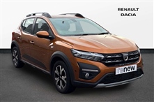 Dacia Sandero Stepway 1.0 TCe Prestige 5dr 5 Door in orange, 3.5"TFT instrument panel with on-board computer, Blind spot warning, Cruise control with speed limiter, eCall emergency call system, Eco mode, Electric power assisted steering, Front parking sensors,