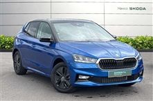 Skoda Fabia 1.0 TSI 116 Design Edition 5dr 5 Door in blue, Advanced driver attention and drowsiness monitor, Bluetooth connection, Electromechanical power steering, Exterior temperature gauge, Service interval indicator, Traffic sign recognition, Virtual cock