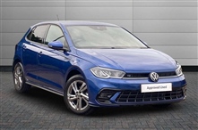 Volkswagen Polo 1.0 TSI R-Line 5dr DSG 5 Door in blue, Adaptive cruise control with follow-to-stop and speed limiter, Advanced driver attention and drowsiness monitor, Bluetooth mobile phone interface, Digital Cockpit Pro with 10.25"Display, Dynamic road