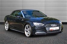 Audi A5 Cabriolet 40 TFSI S Line Edition 2dr 2 Door in black, Piano black finish inlay, Extended LED interior light pack - A5/RS5, Non Smokers pack, 20"5 arm rotor alloy design wheels with matt titanium finish, Tyre repair kit, Anti theft alarm system, Anti thef