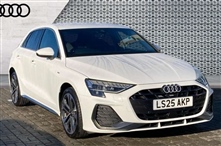 Audi A3 40 TFSI e S Line 5dr S Tronic 5 Door in white, Adjustable speed limiter, Audi drive select, Audi smartphone interface with app store includes wireless Apple carplay, Android auto and Amazon alexa integration, Audi virtual cockpit plus - 12.3"full