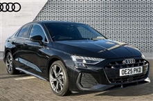 Audi A3 Saloon 35 TFSI S Line 4dr S Tronic 4 Door in black, Adjustable speed limiter, Audi drive select, Audi smartphone interface with app store includes wireless Apple carplay, Android auto and Amazon alexa integration, Audi virtual cockpit plus - 12.3"full