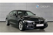 BMW 4 Series 420i Sport 2dr Auto [Business Media] 2 Door in black, BMW Online services, BMW remote services, BMW Teleservices, Brake pad wear indicator warning light, Check control system, Door/boot open warning, Front/rear Parking distance control, iDrive controller