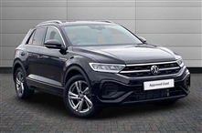 Volkswagen T-Roc 1.5 TSI R-Line 5dr DSG 5 Door in black, 10.25"Digital cockpit pro, Advanced driver attention and drowsiness monitor, Emergency call service, Lane keeping system Lane Assist, Mobile phone interface, Modified key software - reduce switch off