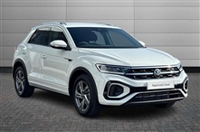 Volkswagen T-Roc 1.5 TSI R-Line 5dr DSG 5 Door in white, 10.25"Digital cockpit pro, Advanced driver attention and drowsiness monitor, Emergency call service, Lane keeping system Lane Assist, Mobile phone interface, Modified key software - reduce switch off