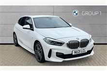 BMW 1 Series 120 M Sport 5dr Step Auto 5 Door in white, Active guard plus, Attentiveness assist, Bluetooth / WiFi interface for wireless connection of mobile terminal devices and audio streaming, BMW ConnectedDrive online services, BMW Live cockpit plus, B