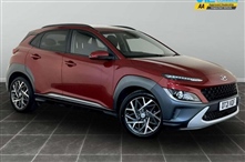 Hyundai Kona 1.6 GDi Hybrid Premium 5dr DCT 5 Door in red, 10.25"touchscreen satellite Navigation with Bluelink and Mapcare, Bluetooth system, Cruise control + speed limiter, Digital clock, Drive mode selector, Driver attention alert system, Driver's supervis