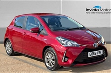 Toyota Yaris 1.5 Hybrid Icon 5dr CVT 5 Door in red, Bluetooth system, Cruise control, External temperature gauge, Fuel indicator with low level warning, Lane departure warning system, Lights on warning, Multi-information display, Power Steering, Push b