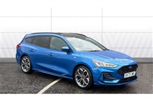 Ford Focus Estate 1.0 EcoBoost Hybrid mHEV ST-Line X 5dr Auto 5 Door in blue, 12.3"Digital instrument cluster, Bluetooth system, Digital clock, Easy fuel capless refuelling system, Eco mode, Ford SYNC4 Nav with 13.2'' touchscreen, DAB, Emergency Assistance, Apple Carplay & Andr