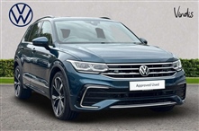 Volkswagen Tiguan 2.0 TDI 200 4Motion R-Line 5dr DSG 5 Door in blue, Adaptive cruise control ACC stop and go including speed limiter, App-Connect incl. App-Connect Wireless for Apple CarPlay and Android Auto, Bluetooth phone integration system, Digital Cockpit Pro - A