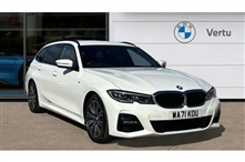 BMW 3 Series Touring 320d MHT M Sport 5dr Step Auto 5 Door in white, Active guard plus, Attentiveness assist, Bluetooth hands free facility with USB audio interface with audio streaming, BMW ConnectedDrive oline services with BMW apps, BMW iDrive controller on centre c