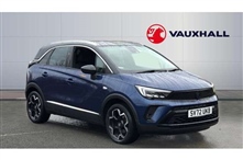 Vauxhall Crossland 1.2 Turbo [130] Ultimate 5dr Auto 5 Door in blue, 3.5"colour instrument display, Audible lights on warning, Cruise control + speed limiter, Digital clock with automatic RDS time adjustment, Driver drowsiness alert system, E-call, Forward collision wa