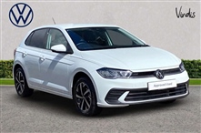 Volkswagen Polo 1.0 TSI Match 5dr DSG 5 Door in white, Advanced driver attention and drowsiness monitor, Bluetooth mobile phone interface, Dynamic road sign display, Emergency call service, Multifunction front facing camera for distance control, Park dist