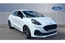 Ford Puma ST 1.5 EcoBoost ST 5dr 5 Door in white, Cruise control with Intelligent speed assist, Driver impairment monitor, Emergency call service, Ford easy fuel, Front and rear parking sensors, Full digital 12.3"instrument cluster, Lane keeping aid