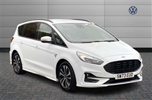 Ford S-MAX 2.5 FHEV 190 ST-Line 5dr CVT 5 Door in white, 'Ford Power' starter button, 10.1"semi digital cluster, Easy fuel capless refuelling system, eCall emergency call system, Lane keeping aid including driver impairment monitor and active steering with