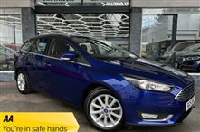 Ford Focus 1.6 Titanium Estate Petrol Powershift Euro 6 (125 ps) 5dr in Blue, Features Include: , 12v power socket - front, 8in touchscreen colour display, aux connection, bluetooth handsfree phone system, centre console - additional 12v power socket, colour tft instrument clu