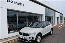 Volkswagen T-Roc 1.0 TSI Style 5dr 5 Door in white, 10.25"Digital cockpit pro, Bluetooth mobile phone interface, Driver alert system with fatigue detection, Driver tips and journey analysis, Dynamic road sign display, Emergency call service, Lane keepi