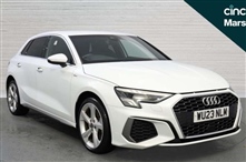 Audi A3 30 TFSI S Line 5dr S Tronic 5 Door in white, Audi drive select (Auto, Comfort, Dynamic and Individual), Audi smartphone interface, Audi Virtual Cockpit - 10.25"digital and colour instrument cluster, Automatic start/stop system with recuperation,