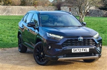 Toyota RAV4 2.5 VVT-i Hybrid Excel 5dr CVT 5 Door in blue, 7"colour TFT display, Adaptive cruise control with lane trace assist, Adjustable speed limiter, Apple car play and Android auto, Blind spot monitoring with rear cross traffic alert, Bluetooth system,