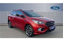 Ford Kuga 2.0 TDCi ST-Line 5dr 2WD 5 Door in red, Apple car play/Android Auto, Enhanced active park assist including perpendicular parking pull out assist, flank guard and front/rear parking sensor, EPAS, Hands free telephone, Trip computer, Sports s