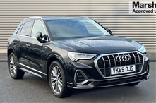 Audi Q3 35 TFSI S Line 5dr S Tronic [Leather] 5 Door in black, Amazon alexa Integration, Audi connect safety and service, Audi drive select, Audi lane departure warning, Audi smartphone interface includes wireless Apple carplay/Android Auto, Audi Virtual Cockpit