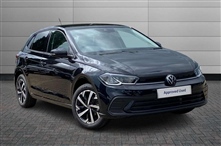 Volkswagen Polo 1.0 TSI Match 5dr 5 Door in black, Adaptive cruise control without follow-to-stop and speed limiter, Advanced driver attention and drowsiness monitor, Bluetooth mobile phone interface, Dynamic road sign display, Emergency call service,