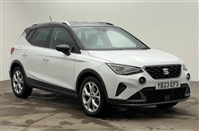 Seat Arona 1.0 TSI 110 FR 5dr 5 Door in White, 9.2in Touchscreen DisplayBluetooth Audio Streaming with Handsfree SystemFull Link Smartphone IntegrationSEAT Connect - Safety - Service - Remote - OnlineSix SpeakersWireless Phone ChargerCruise Contro
