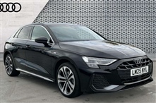 Audi A3 40 TFSI e S Line 5dr S Tronic 5 Door in black, Adjustable speed limiter, Audi drive select, Audi smartphone interface with app store includes wireless Apple carplay, Android auto and Amazon alexa integration, Audi virtual cockpit plus - 12.3"full