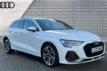 Audi A3 40 TFSI e S Line 5dr S Tronic 5 Door in white, Adjustable speed limiter, Audi drive select, Audi smartphone interface with app store includes wireless Apple carplay, Android auto and Amazon alexa integration, Audi virtual cockpit plus - 12.3"full