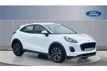 Ford Puma 1.0 EcoBoost Hybrid mHEV Titanium 5dr 5 Door in white, Driver impairment monitor, Emergency call service, Ford easy fuel, Lane keeping aid with lane departure warning, Power assist steering, Power start button, Rear parking sensor, Selectable drive modes(