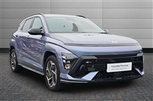 Hyundai Kona 1.6 GDi Hybrid N Line 5dr DCT 5 Door in blue, 12.3"touchscreen centre console display satellite navigation with bluelink, live services and mapcare, Bluetooth connectivity with voice recognition, Digital clock, Driver status monitor (DSM), Driver