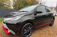 Toyota Aygo 1.0 VVT-i x-press Euro 6 5dr in Pearl Black, Features Include: , 15in alloy wheels - 10 spoke - machined black, gleam fabric - dark grey with light grey and white bolsters, x-nav, 15in alloy wheels - 10 spoke - gloss black, 3-spoke leather stee
