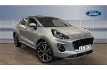 Ford Puma 1.0 EcoBoost Hybrid mHEV Titanium 5dr 5 Door in silver, Driver impairment monitor, Emergency call service, Ford easy fuel, Lane keeping aid with lane departure warning, Power assist steering, Power start button, Rear parking sensor, Selectable drive modes(