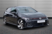Volkswagen Golf GTI 2.0 TSI 265 GTI 5dr DSG 5 Door in black, Activated carbon canister, Adaptive cruise control (ACC), Advanced driver attention and drowsiness monitor, Dynamic road sign display, E-Sim card for online connectivity, eCall emergency call system,