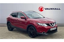 Nissan Qashqai 1.2 DiG-T Tekna [Non-Panoramic] 5dr 5 Door in red, Tyre puncture repair kit, Alarm, Immobiliser, Intelligent Key, Remote central locking, 6 speakers, DAB radio/CD player, Steering wheel mounted audio controls, USB/aux input socket, ABS, brake assist a