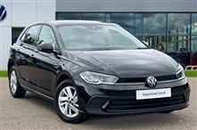 Volkswagen Polo 1.0 Life 5dr 5 Door in black, Bluetooth mobile phone interface, Cruise control + speed limiter, Driver alert system, Emergency call service, Lane keeping system Lane Assist, Power assisted speed sensitive steering, Preparation for