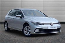 Volkswagen Golf 1.5 TSI Life 5dr 5 Door in silver, Adaptive cruise control (ACC) with speed limiter and front assist (reacting to vehicles pedestrians and cyclists), Car2X communication, Digital cockpit, Driver alert system, Dynamic road sign display,