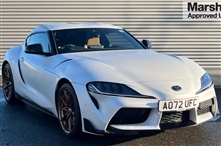 Toyota GR Supra 3.0 Pro 3dr Auto 2 Door in white, Adaptive cruise control with stop and go + steering wheel, Blind spot monitor, Digital speedometer, Drive mode selector, Driver and passenger microphone, Driving assistant, Dynamic guide lines on reve