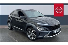 Hyundai Kona 1.6 GDi Hybrid Ultimate 5dr DCT 5 Door in black, 10.25"touchscreen centre console display satellite navigation with live services and mapcare, Blind spot collision avoidance assist, Bluetooth connectivity, Digital clock, Driver attention warning, Dr