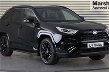Toyota RAV4 2.5 VVT-i Hybrid Black Edition 5dr CVT 5 Door in black, 7"TFT multi information display, Analog tachometer, Apple car play and Android auto, Blind spot monitoring with rear cross traffic alert, Bluetooth system, Cyclist Detection, Drive mode selector, eCal