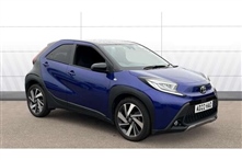 Toyota Aygo X 1.0 VVT-i Exclusive 5dr 5 Door in blue, 4.2"TFT colour screen, Adjustable speed limiter, Analogue speedometer, Bluetooth connectivity, Digital tachograph, Driver attention alert system, eCall emergency call system, Electric power steering,