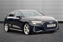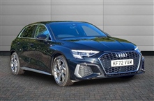 Audi A3 40 TFSI e S Line 5dr S Tronic 5 Door in black, Adjustable speed limiter, Audi drive select, Audi smartphone interface with app store includes wireless Apple carplay, Android auto and Amazon alexa integration, Audi virtual cockpit plus - 12.3"full