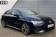Audi A3 35 TFSI S Line 5dr S Tronic 5 Door in blue, Adjustable speed limiter, Audi drive select, Audi smartphone interface with app store includes wireless Apple carplay, Android auto and Amazon alexa integration, Audi virtual cockpit plus - 12.3"full
